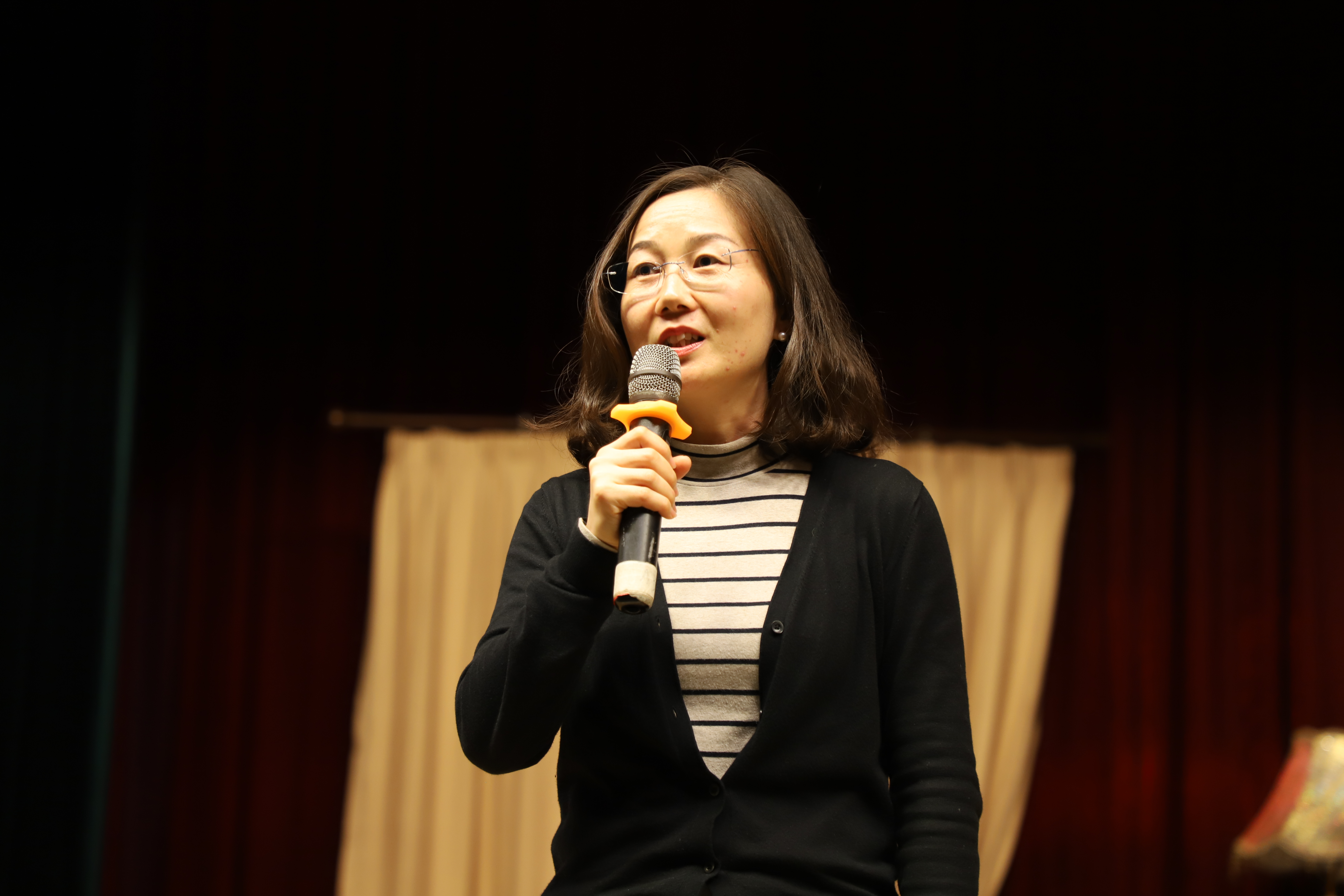 继双方互赠礼物环节后,广东工业大学学生戏剧团指导老师、上海戏剧学院郭娜博士上台作戏剧微讲座。郭娜博士为大家介绍了戏剧的起源,如何鉴赏戏剧的要点等内容,并谈到了青年学生演戏剧能够培养独立、批判的思考能力,积极主动的态度和勇于尝试的精神。