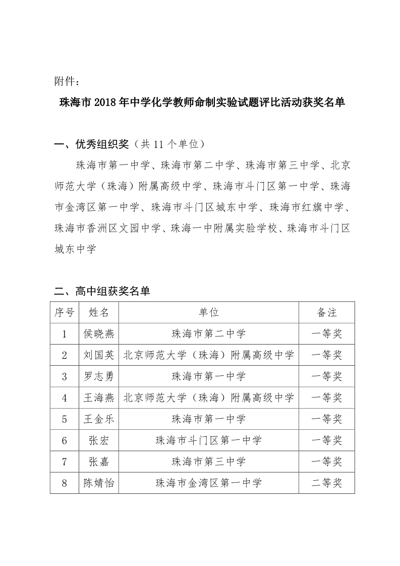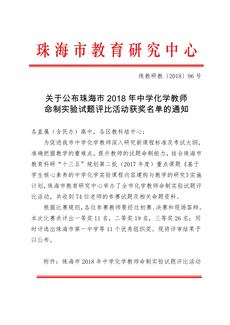 喜报——我校罗志勇、王金乐、邓洪侠老师参加珠海市2018年中学化学教师命制实验试题评比活动获奖