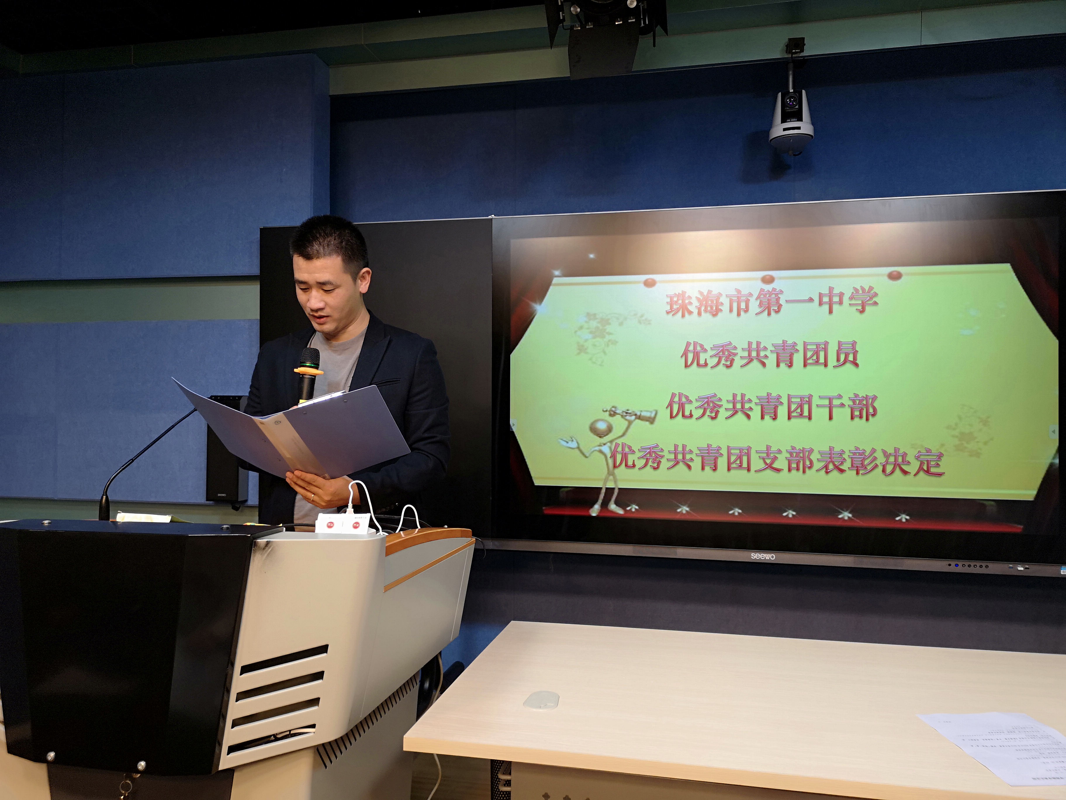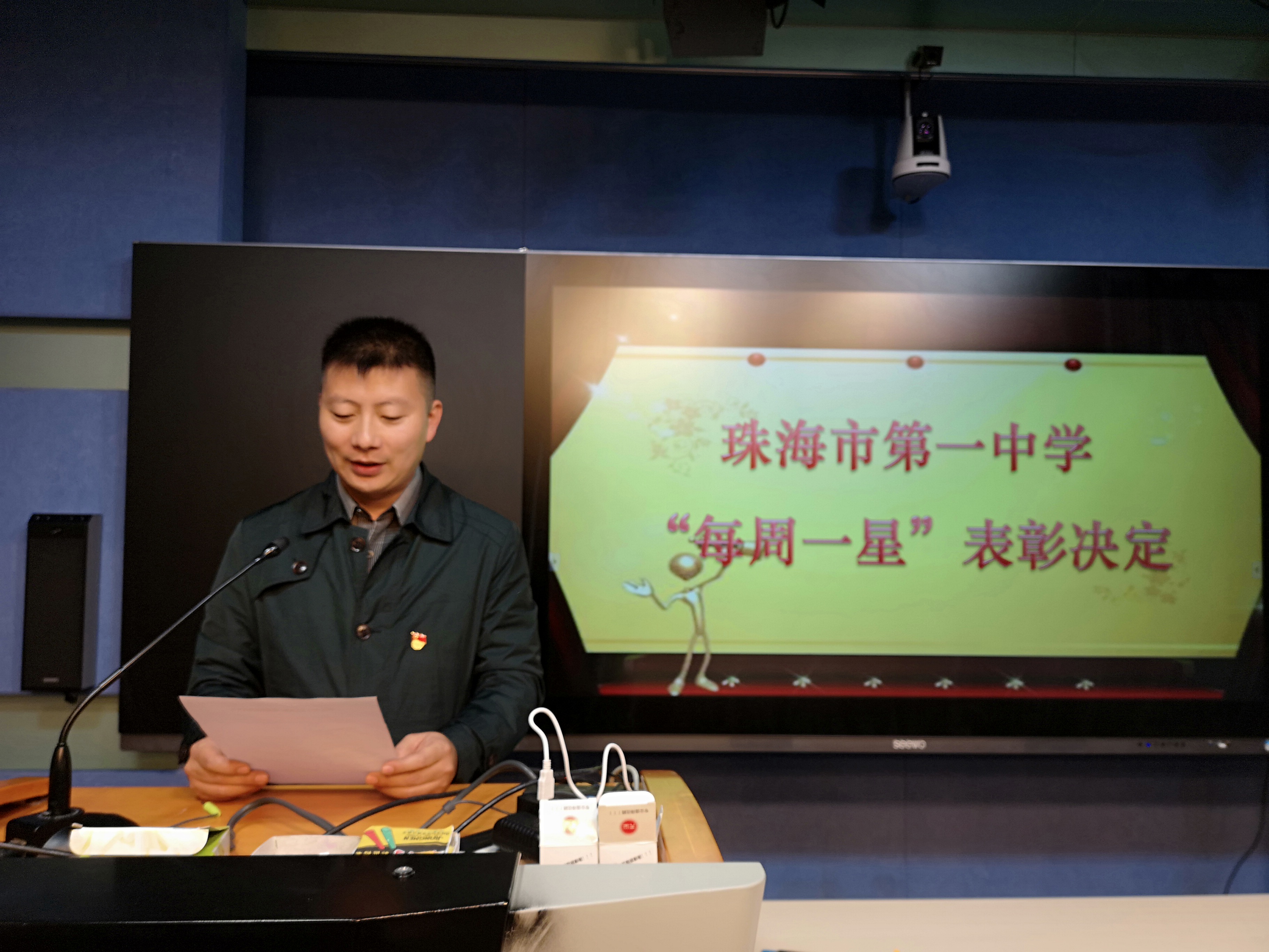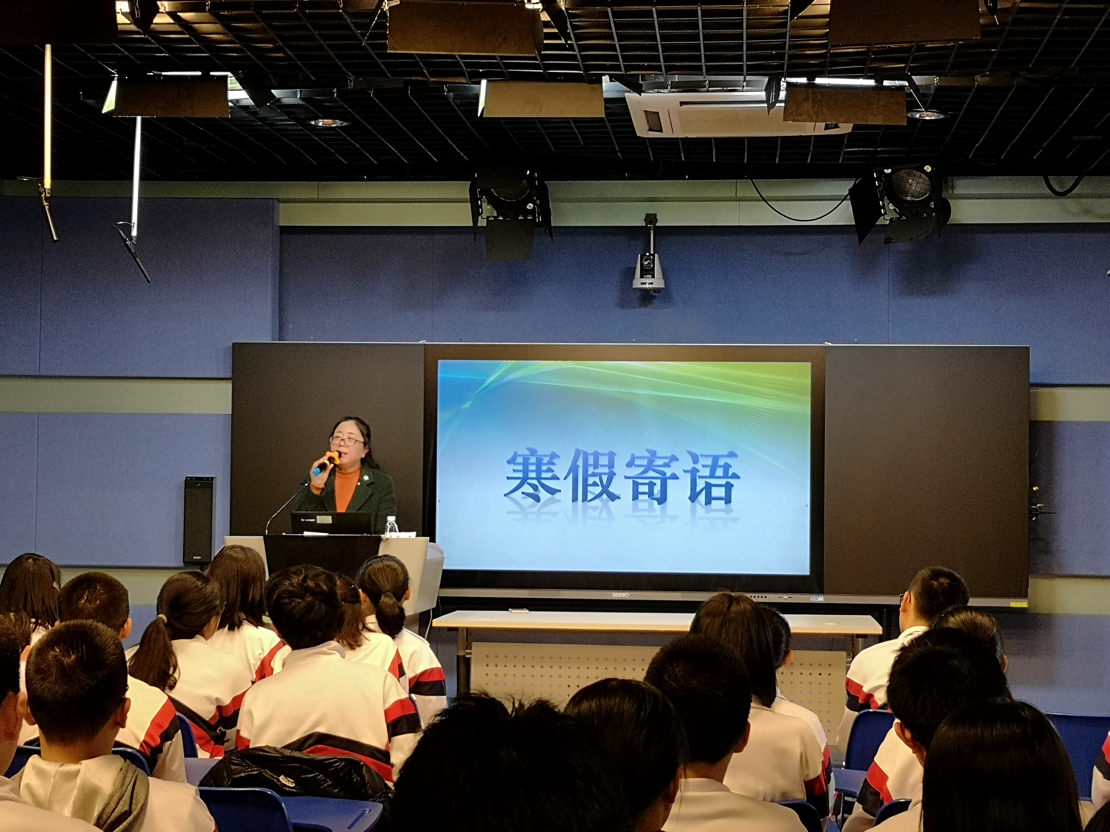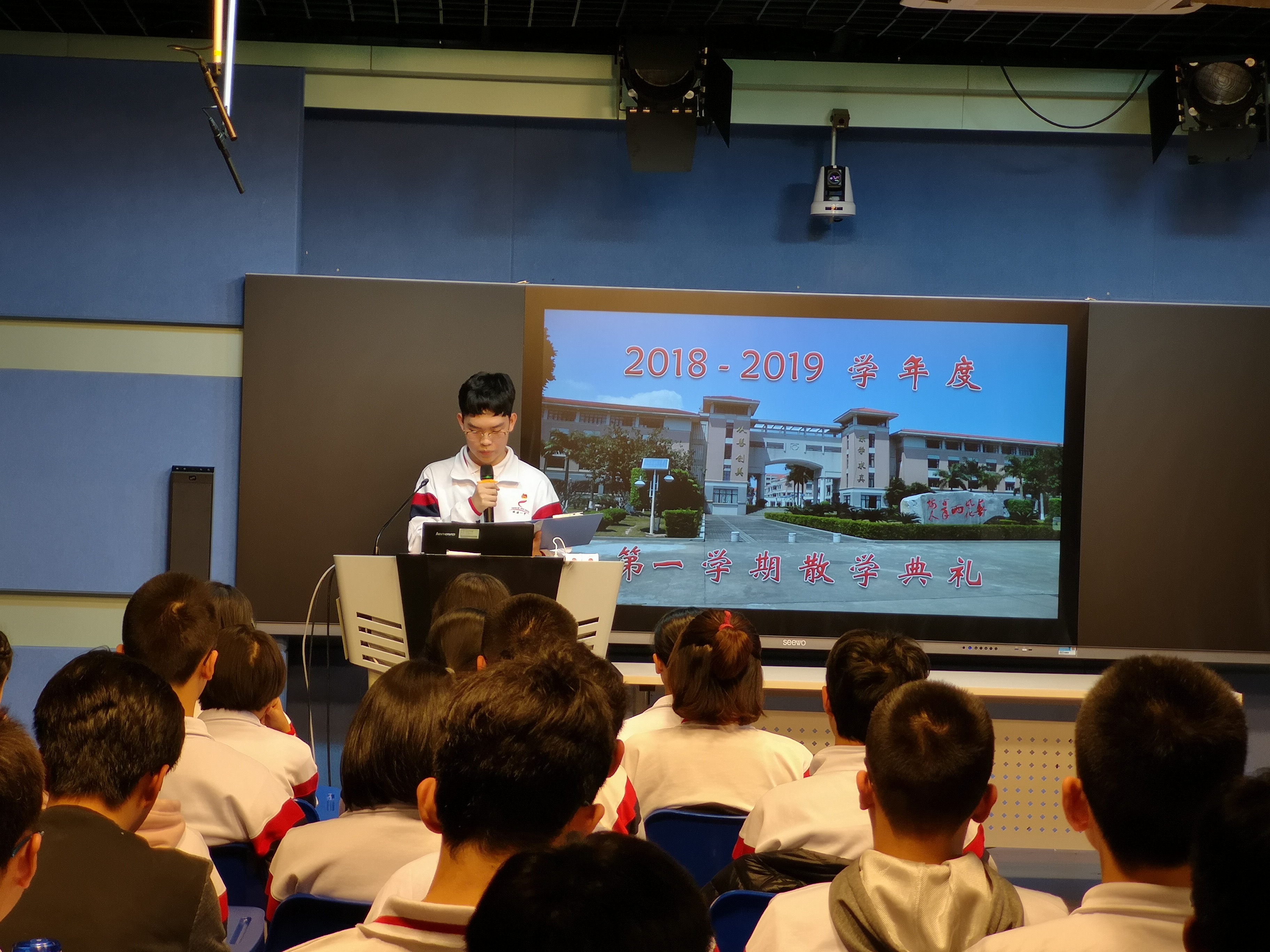 2018年1月25日下午2:20,珠海一中2018-2019学年度第一学期散学典礼在信息中心演播厅如期举行,全校师生在各班教室通过电视网络收看了典礼。