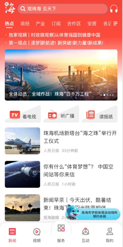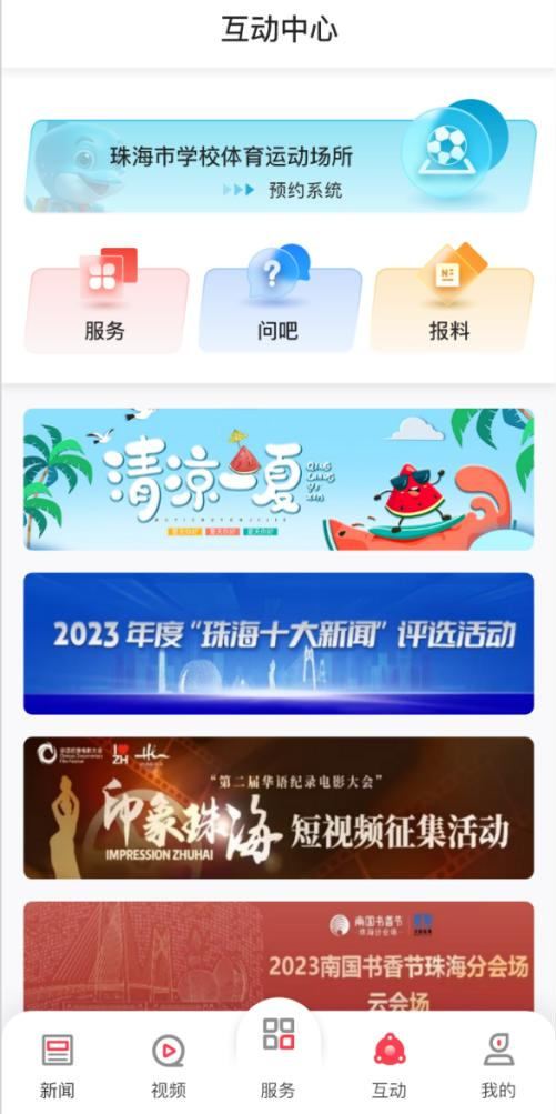 2、在首页点击“珠海市学校体育运动场所预约系统”进入系统,或者选择“互动”模块,点击“珠海市学校体育运动场所预约系统”,进入系统;