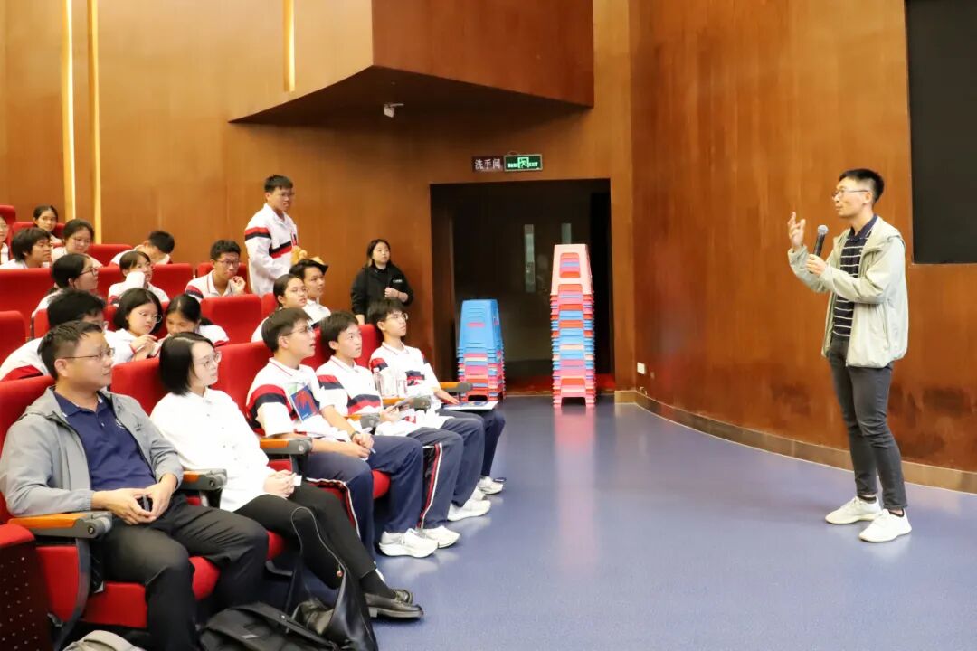 10月23日下午,来自香港科技大学(广州)的三位重量级嘉宾——贺冬琳教授、苑荣峰教授、何全甫助理教授,带来了三场干货满满的讲座。贺冬琳教授用通俗易懂的语言科普MOF(金属有机框架材料)的神奇世界,从材料结构到实际应用,让师生们惊叹于化学材料的无限潜力;苑荣峰教授聚焦“水溶液中的质子传输”,深入解析这一基础化学过程背后的科学原理;何全甫教授则围绕“大气二次污染的化学机制”展开讲解,结合现实环境问题,让大家意识到化学研究与生态保护的紧密联系。