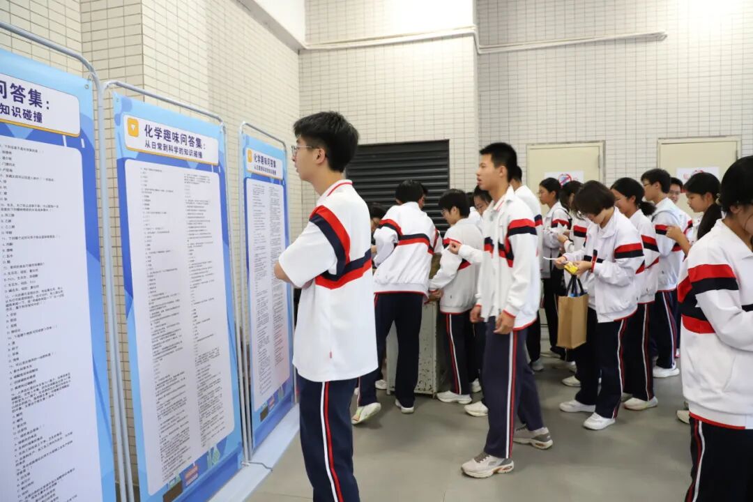除了前沿讲座,学科节的互动展区同样人气爆棚。在“化学前沿成果展”板块,精心设计的展板系统介绍了MOF材料、新型电池等化学十大前沿科技成果,搭配生动的图文,让抽象的科研突破变得直观易懂;“璀璨化学史”板块则讲述了拉瓦锡、李比希等科学家的轶事,让师生们在历史故事中感受化学发展的历程。