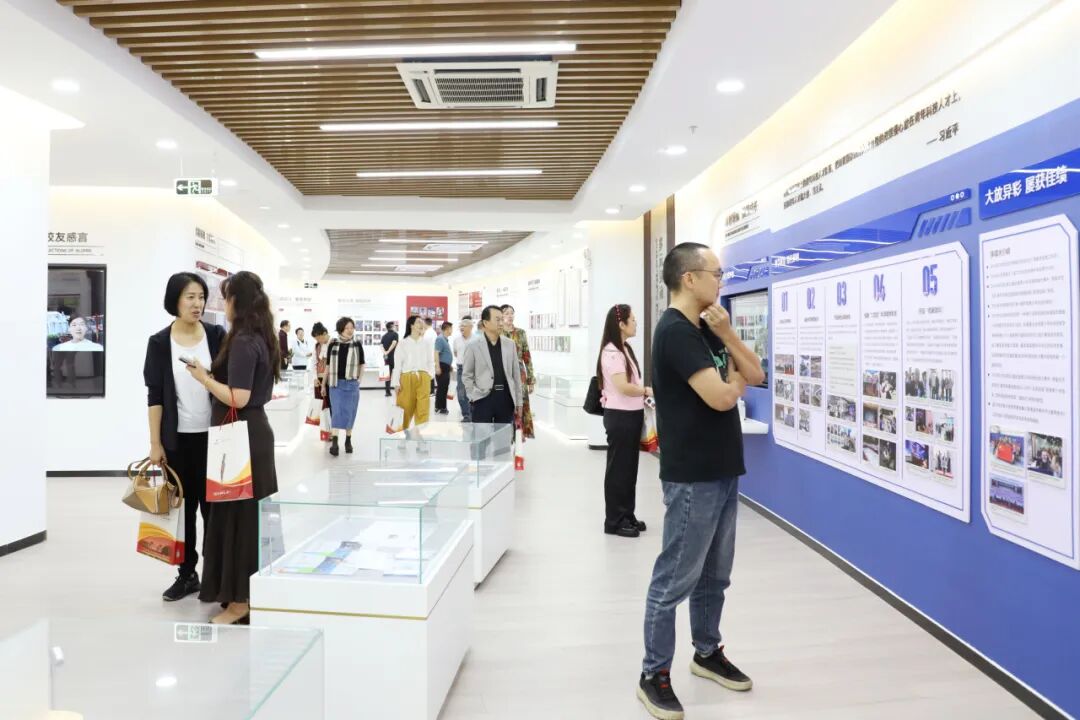 讲座结束后,交流团在我校薛冰副校长的陪同下参观了学校博物馆。南海之滨立德树人,凤凰山麓书香传承。从“坎坷历程 峥嵘岁月”的校史发展时间轴,到记录着师生成就的“一中之最”墙;从“春风化雨 润物无声”的名师光荣榜,到“桃李芬芳 捷报频传”的学生荣誉墙;从“科创领航 赋能成长”的特色教育,到“培根铸魂 立德树人”的德育成果……一段段厚重的文字、一张张古旧的图片、一尊尊荣耀的奖杯、一件件珍贵的实物,薛冰副校长生动讲述了珠海一中自1960年建校以来的发展脉络与文化积淀。参观过程中,交流团时而驻足细观,时而互相交流,深入了解我校六十五载办学历程与“乐学,求真,从善,创美”的校训文化底蕴,对我校“美的教育”的办学特色以及丰硕的育人成果表示赞赏。