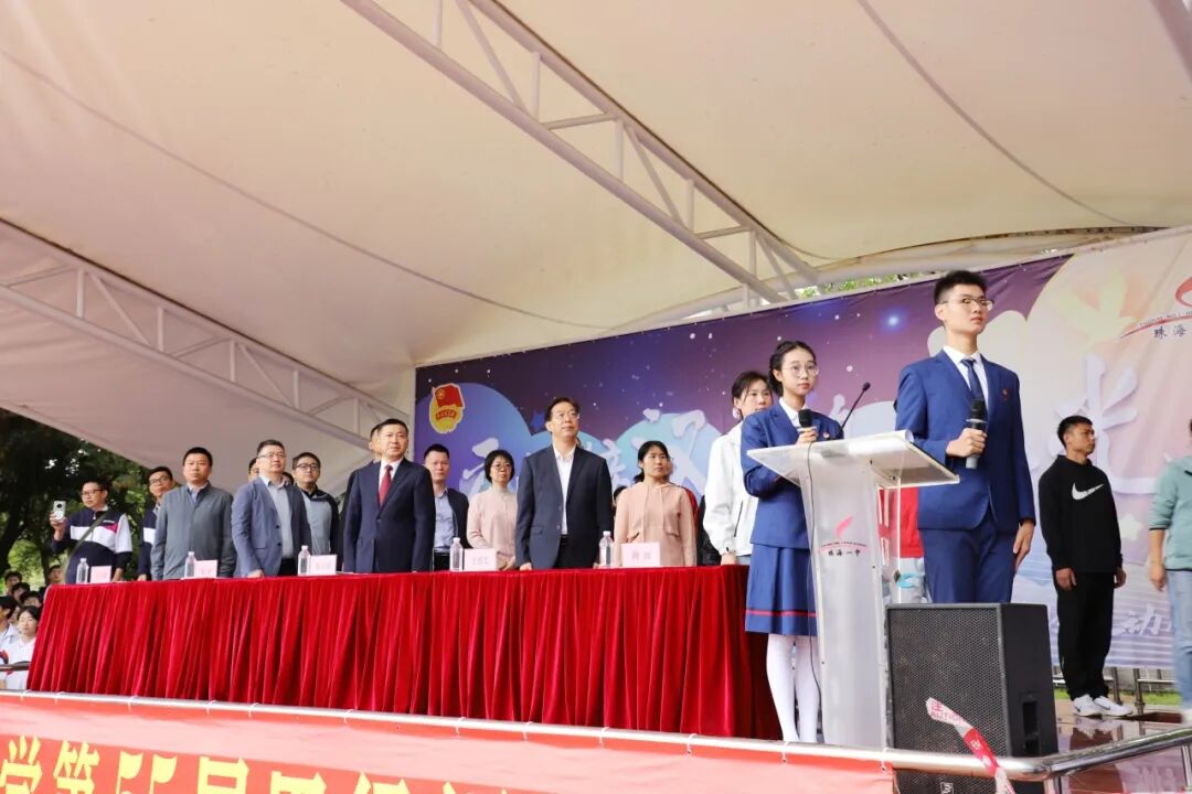 最后,张六安书记宣布:“珠海市第一中学第五十五届田径运动会正式开幕!”本届校运会是对学校体育教学工作的一次大检阅,更是对同学们身体素质、竞技才能、心理承受能力等综合素质的一次大考验,也是全校师生精神风貌和集体荣誉感的一次集中展现。希望同学们在接下来的体育盛会中感受运动的激情与欢乐,让我们把赛场当作又一个成长的课堂,让汗水挥洒出青春的活力,让呐喊汇聚成集体的力量,让奔跑的身影成为校园里最动人的风景线!让我们用激情点燃梦想,用拼搏铸就辉煌,共同将本届校运会办成一届“文明、热烈、精彩、圆满”的盛会!