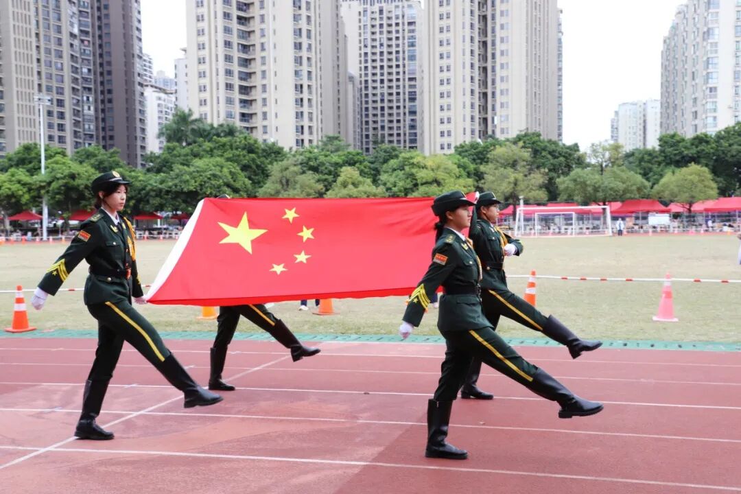 器宇轩昂、身姿挺拔的国旗护卫队身着统一礼服,步伐整齐划一,神情庄重肃穆,护送着五星红旗入场。这面旗帜,象征着荣耀,点燃了希望,将见证一中学子在赛场上挥洒青春、公平竞争、勇创佳绩的每一个瞬间,激励着同学们勇往直前、坚持不懈、奋勇拼搏!