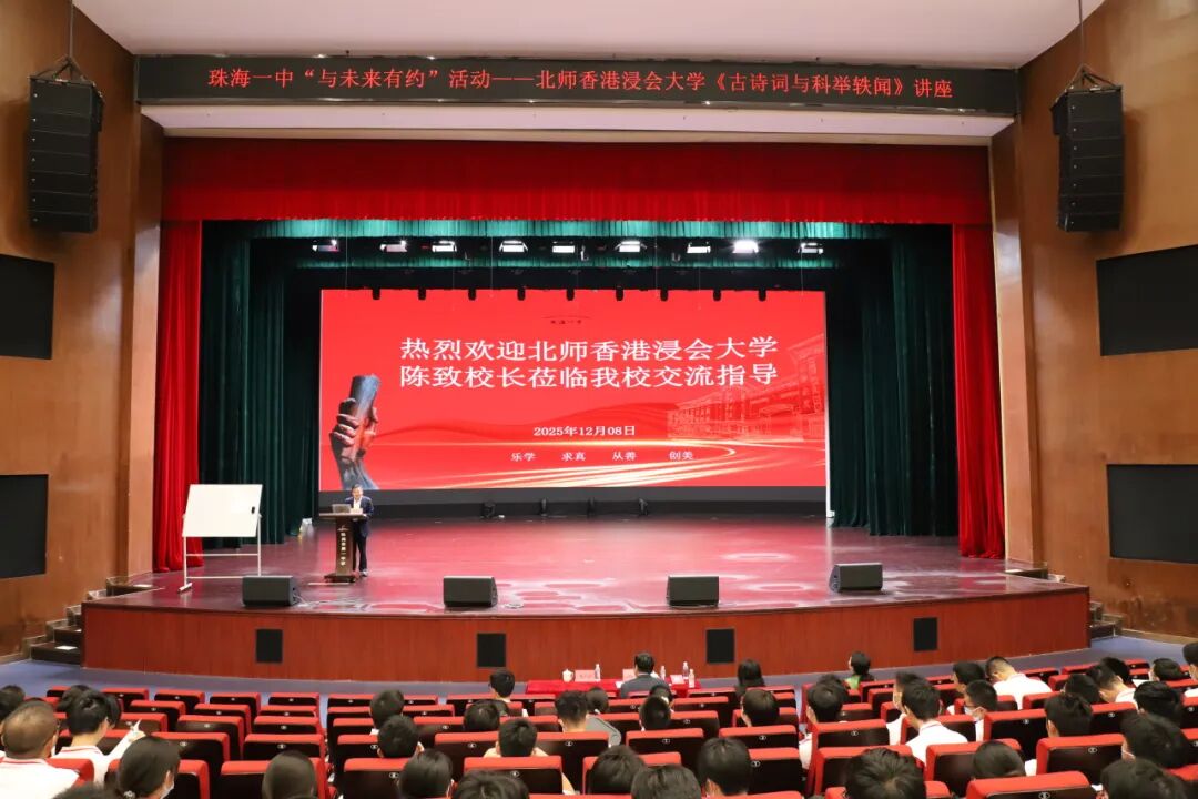 为厚植师生人文底蕴,搭建优质学术交流平台,2025年12月8日下午,北师香港浸会大学校长、讲座教授,香港人文学院院士陈致莅临我校“与未来有约”大讲堂,为师生带来一场主题为《古诗词与科举轶闻》的精彩讲座。让我们共赴这场浸润文脉、诗韵流芳的文化盛宴——