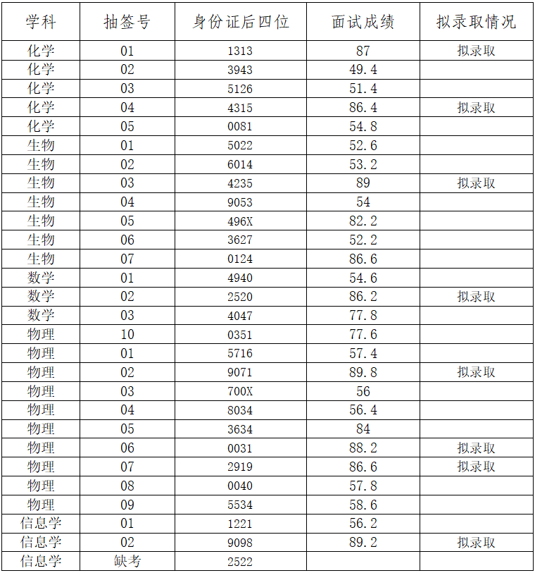 一、面试成绩及拟聘用人员名单