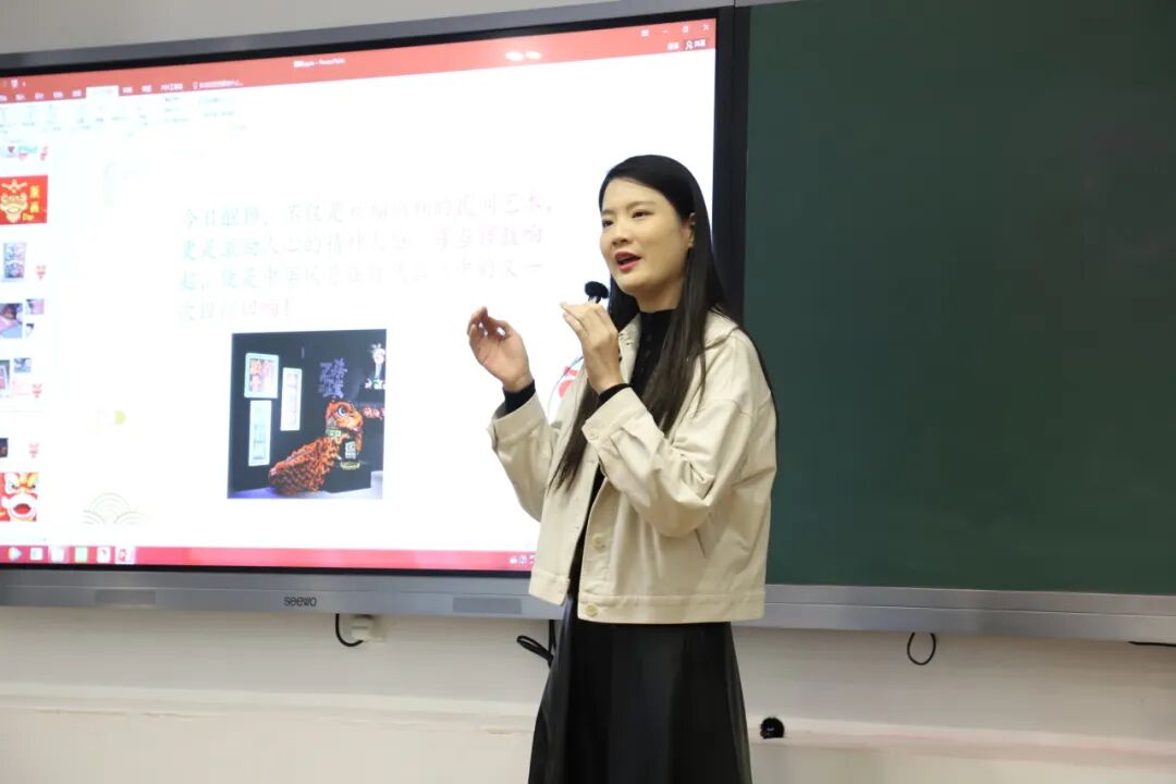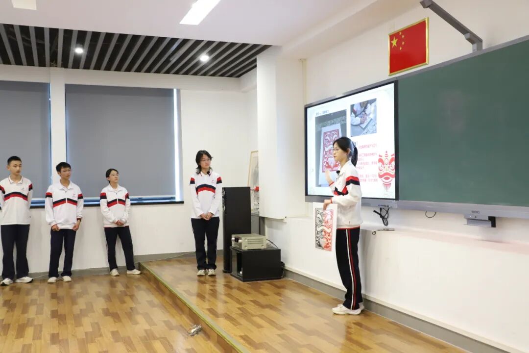 12月11日下午,各小组在学校敦行楼四楼美术鉴赏教室集中展示学习成果。按照选定的非物质文化遗产创作主题:三灶舞狮、前山凤鸡舞、斗门海上龙舟、三灶竹编技艺、斗门水上婚嫁,学生分小组依次上台展示并介绍了自己创作的版画、设计、剪纸、摄影等作品,分享了创作过程和感想,并按照评价表互相进行星级打分。师生在活动中与非物质文化遗产中蕴含的先辈们代代传承的情感形成成了共鸣,激发了创作灵感,学生作品获得了观摩教师的高度评价。