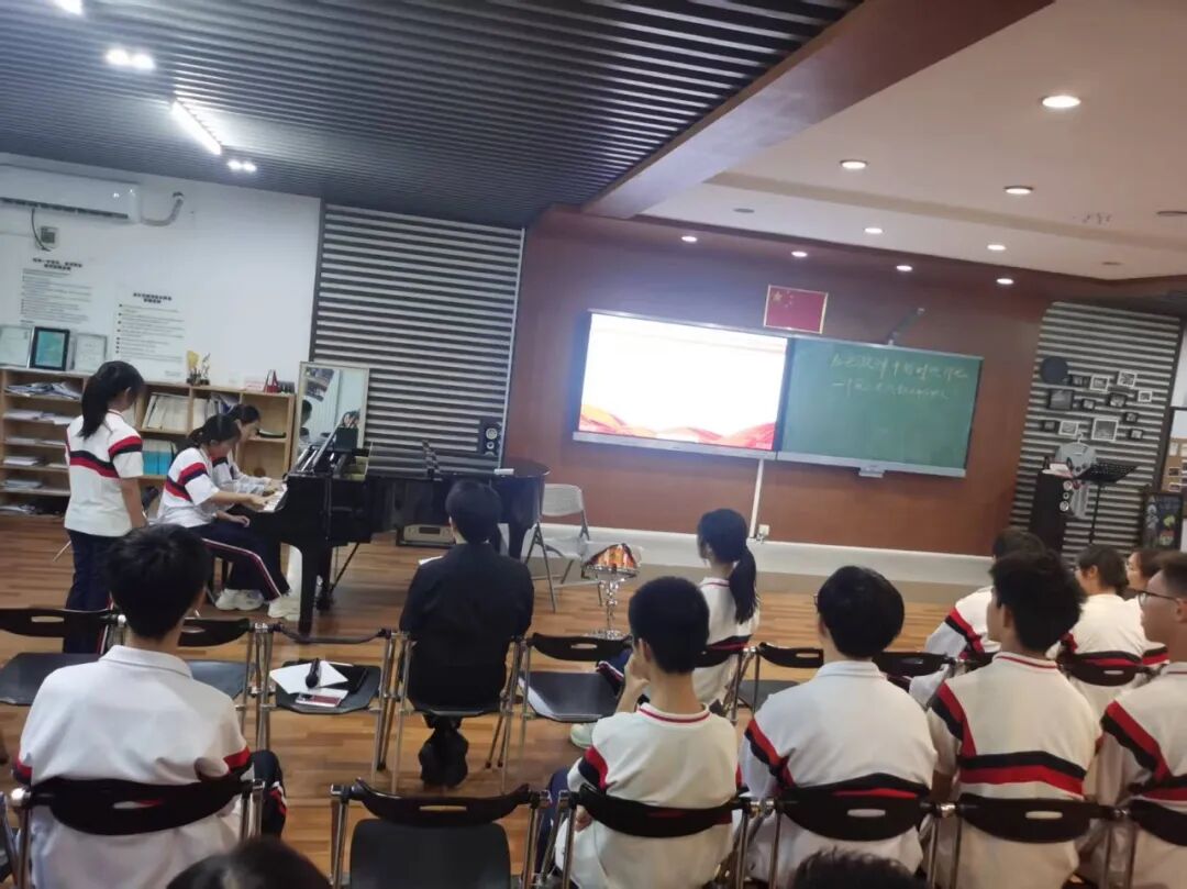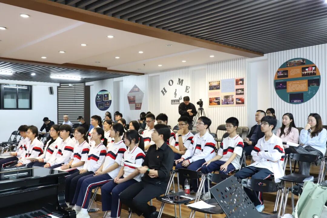 12月11日下午,各小组在学校歌唱教室集中展示学习成果。展示内容丰富多元:有的分析经典合唱作品,有的解读脍炙人口的独唱歌曲,有的探讨新时代流行乐曲;还有小组通过改编歌词体察时代意蕴的变迁,或是以四手联弹形式演绎自编的经典音乐串烧。廖振华老师更与学生合作,即兴弹奏音乐片段,将现场气氛推向高潮。整场展示既生动活泼又富有深度,赢得了观摩教师的一致好评。
