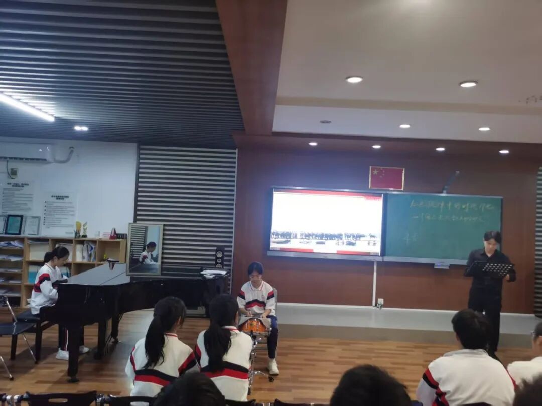 廖振华老师:本次红色旋律跨学科活动圆满落地,音乐学科与政治学科的合作,让政治学科变得更加生动,让音乐学科变得更加有内涵。学生通过成果分享与创编实践深度感受红色音乐魅力与动员功能。亮点是分组选题差异化较强,创编环节聚焦红色旋律核心音乐要素(如三连音、小号音色等)引导学生自主创作,沉浸式还原抗战场景,既锻炼实践能力,又强化情感共鸣。不足部分小组理论与音乐融合稍浅,互动提问深度不足。后续将优化分组指导,设计分层提问,强化跨学科逻辑衔接,提升活动深度与学生参与质感。