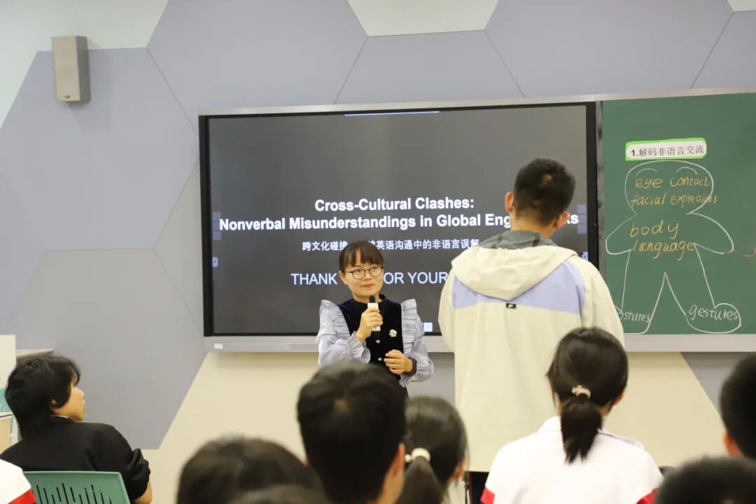 此项目以小组合作形式展开研究,以“解码非言语沟通”为核心,心理与英语学科协同设计学习路径。学生从理论出发,探究微表情、肢体语言、空间距离等的文化差异,在情景模拟、小组研究中逐步构建跨文化沟通策略。