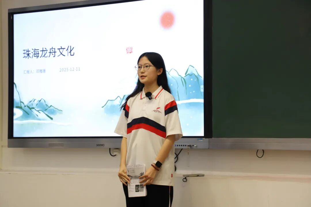 高二(19)班 李琳:这次创作让我对非遗有了全新认知。原本只是一份作业,却在调研中被水上婚嫁的文化内涵深深打动。从了解疍家渔民与海洋共生的智慧,到看到斗门村民传承人们坚守的身影,我真切感受到非遗不是尘封的历史,而是鲜活的文化基因。收集素材、整理内容的过程,也是一次文化寻根之旅。这让我明白,年轻一代不仅是非遗的见证者,更应是传承者,唯有主动了解、传播,才能让这些珍贵的文化遗产永葆生命力。
