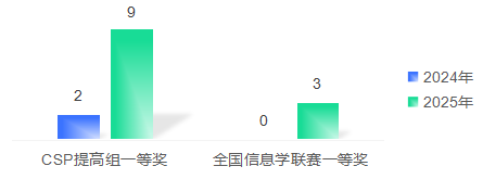 近日,我校学子在中国计算机学会(CCF)软件能力等级考试(CSP-JS2025)和全国信息学奥林匹克联赛(NOIP2025)中再创佳绩,一等奖获奖人数实现倍数级增长。