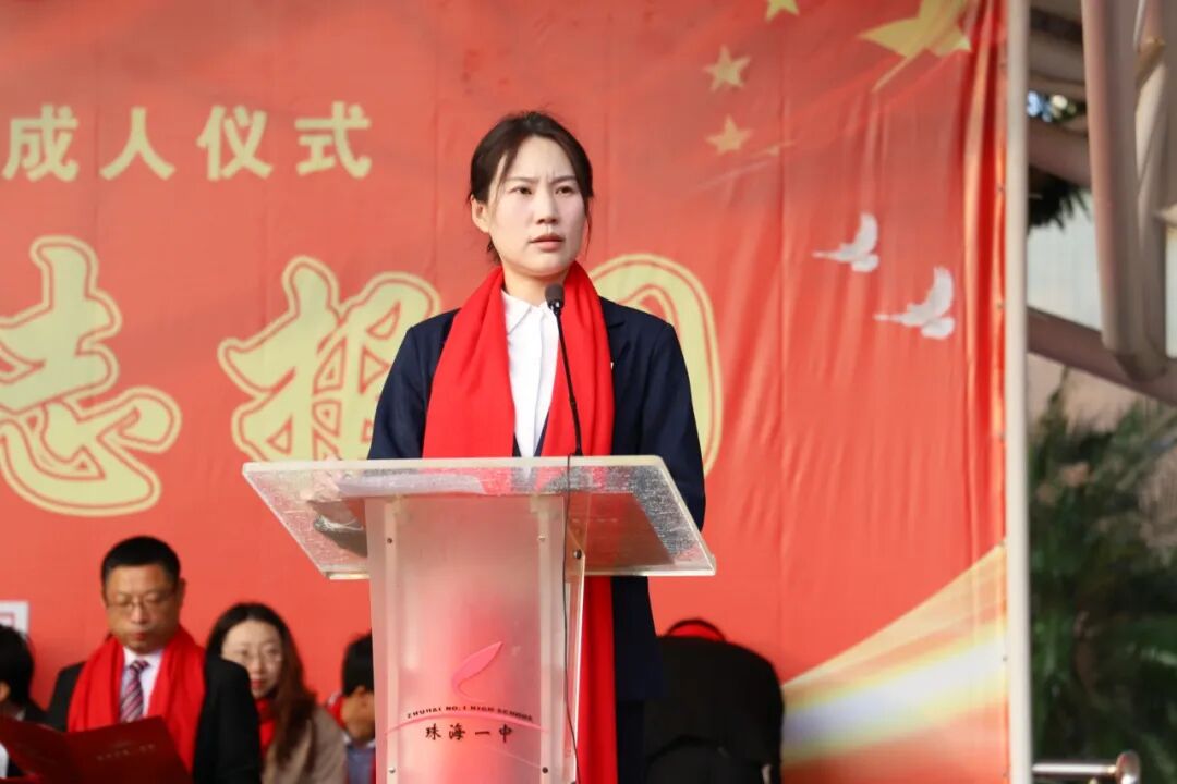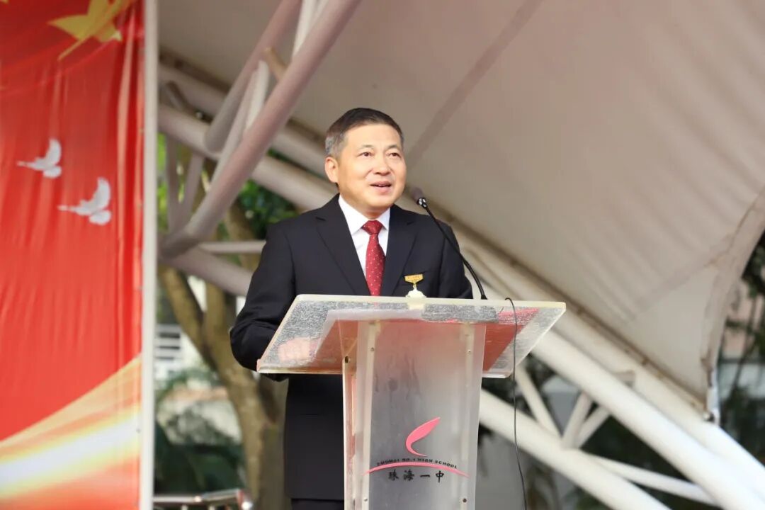 成人礼上,校党委书记张六安首先代表学校,向迈入十八岁门槛、开启人生新篇章的全体同学致以热烈的祝贺,向辛勤付出的父母、师长致以诚挚的感谢。随后,他寄语同学们:成人,首在“立心”。要永葆对真理的渴求,锻造明辨是非的理性,涵养兼容并包的胸怀。在珠海这片得改革开放风气之先的热土上,在一中“乐学、求真、从善、创美”校训精神的熏陶中,建立起稳固而丰盈的精神坐标;成人,重在“担责”。要从身边的小事做起,关爱亲友,尊重他人,心系社会,将个人理想融入国家发展与人类进步的浩荡征程。一中学子,当有“弄潮儿向涛头立”的胆识,更当有“家事国事天下事,事事关心”的情怀;成人,贵在“创美”。要守护内心的善良与正直,坚守诚信的底线,保持对美好事物的敏感与追求,不断创新、创美,让真诚与热爱成为生命最温暖的底色。山海寻梦,不觉其远;前路迢迢,阔步而行。最后,张六安书记勉励同学们要拿出跃马扬鞭的勇气,激发万马奔腾的活力,保持马不停蹄的干劲,为梦想奋斗、为报国砥砺,把宏伟愿景变成美好现实,成为在实现中国式现代化征程上的建设者、奋斗者、成就者!
