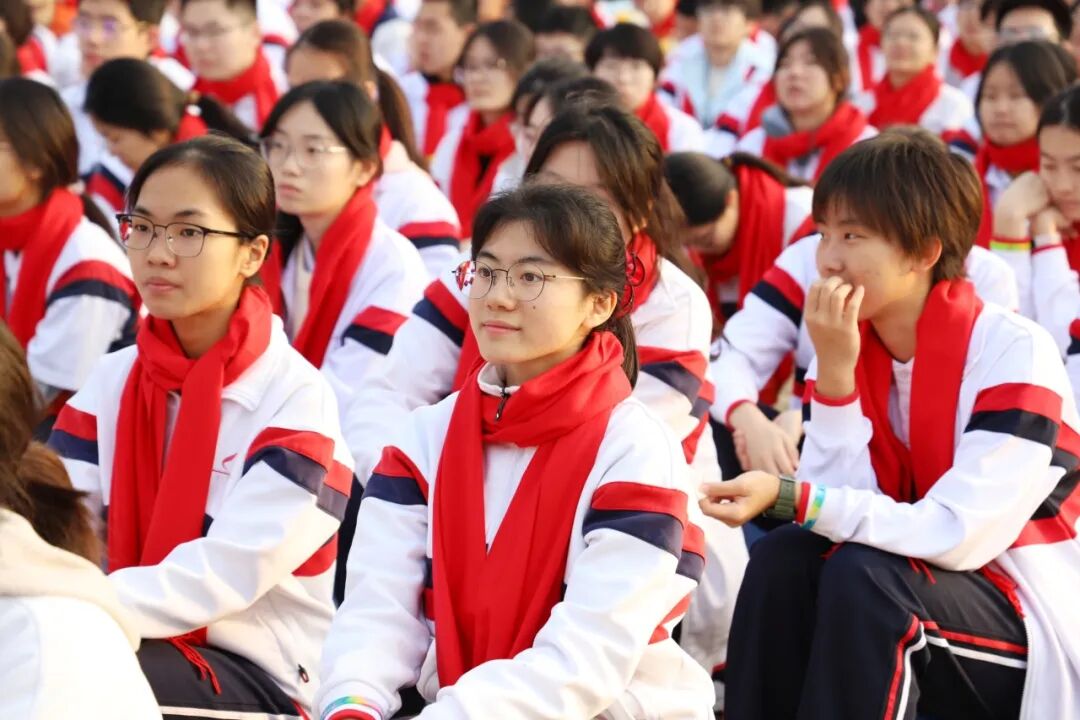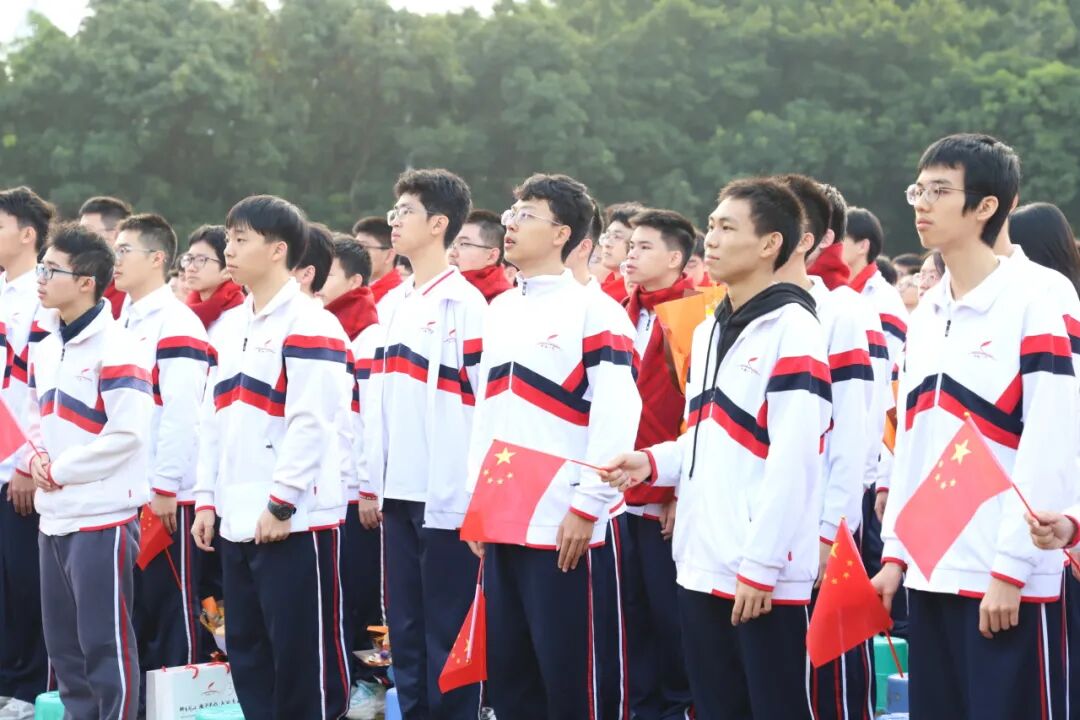 少年壮志,气贯碧海蓝天;信仰之声,激荡时代长风。全场高声唱响国歌、校歌。这一刻,高三同学们以朝气蓬勃的姿态将“十八逐梦 矢志报国”的坚定信念凝聚在每一句熟悉的旋律里、每一束滚烫的目光中,这是青春与家国的同频,是初心与时代的共振!