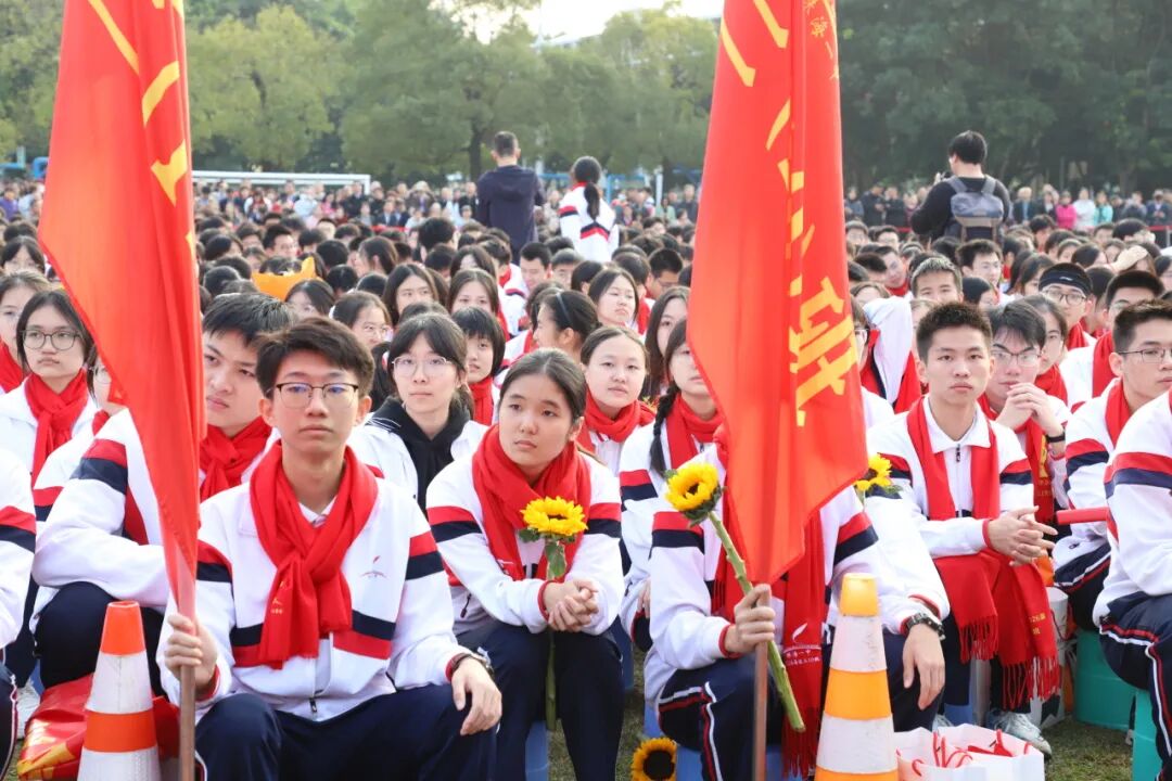 在高三(23)班严一鸣同学的领诵下,全体高三同学齐声朗诵了《少年中国说(节选)》。激昂的文字似战鼓催征,庄重的语调如誓言铮铮。这不仅是青春热血的喷薄呐喊,更是奔赴未来的铁血承诺。
