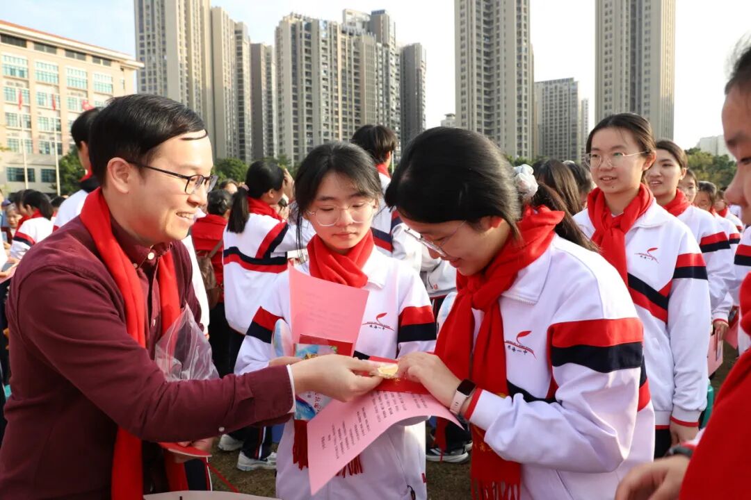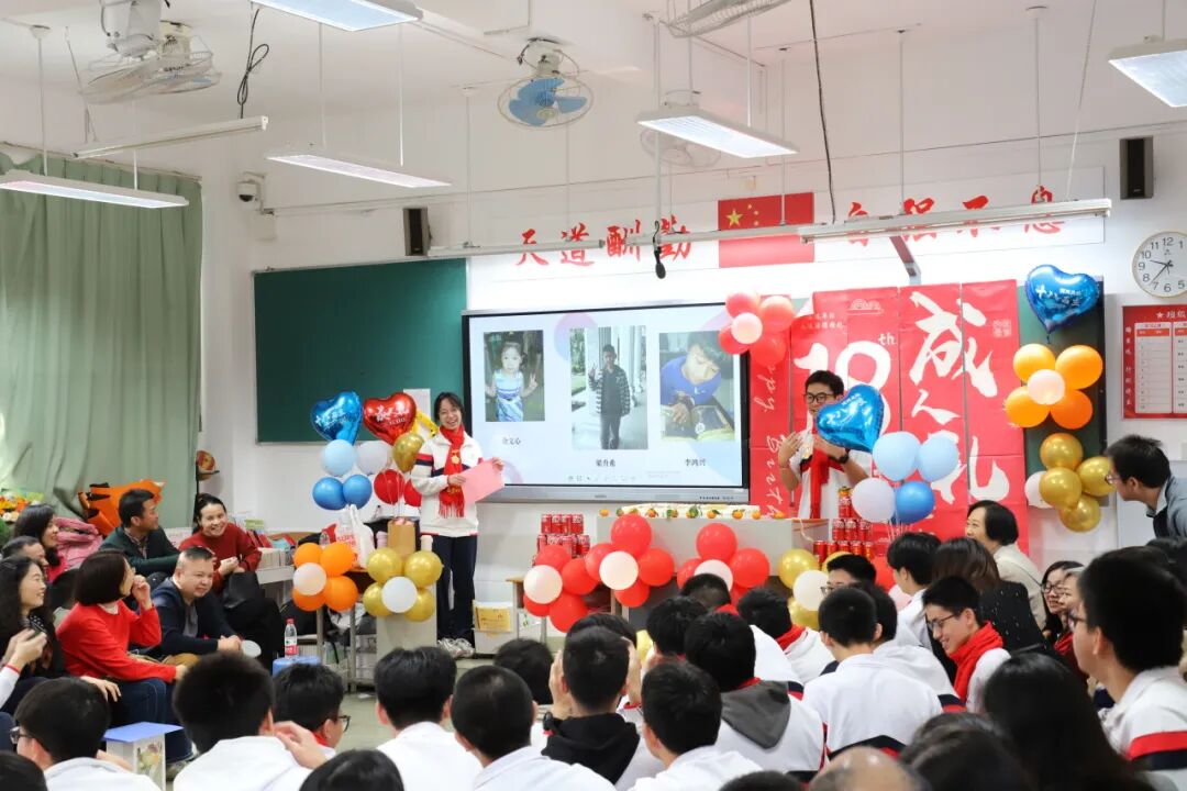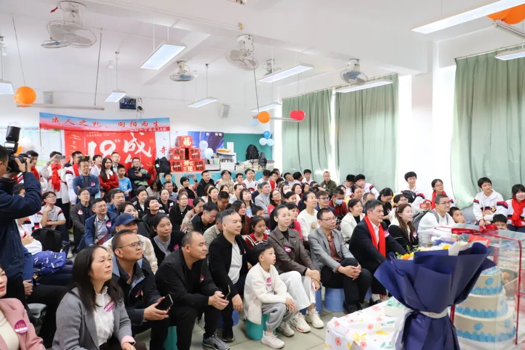 主会场活动后,各班还举行了“成长 感恩 责任 报国”的主题班会。老师们、家长们送上精心准备的成人礼物,或是一束寓意美好的鲜花,或是一张写满祝福的贺信,或是一段鼓舞斗志的寄语。每一份心意都凝聚着他们的殷切期盼与美好祝愿,为同学们奔赴新程注入温暖底气与不竭动力。