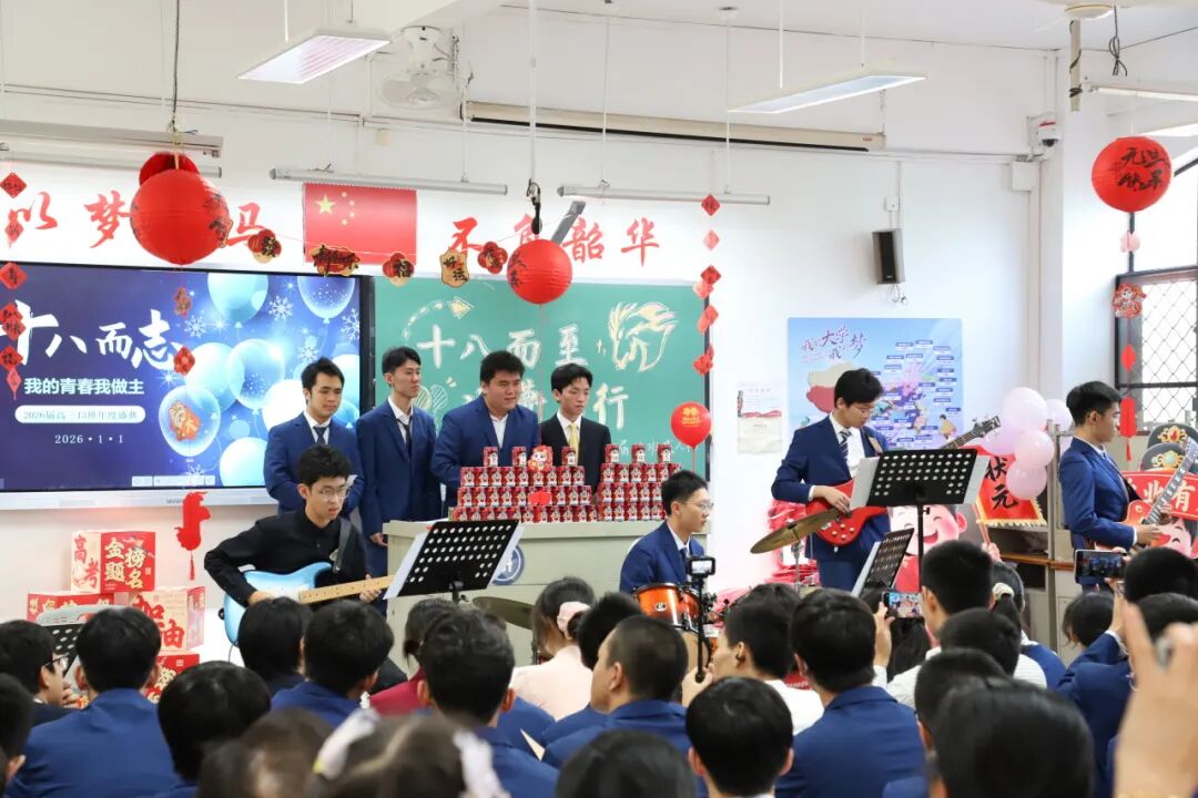 “那春笋漫山遍野,发出拔节成长的脆响;那透雨润物无声,映带满怀感恩的柔光;那松柏立根破岩,撑起顶天立地的脊梁;那江河滚滚东流,激扬矢志报国的担当。”“少年,你听我讲——成长是点滴微光汇成炬火,照亮未知的远方。”“报国不是遥远的召唤,而是把最微末个体的心愿,投进最宏大的民族理想;是无数个‘我’汇聚成‘我们’,改天换地,塑造新时代长城的巍峨雄壮。”“以担当为骨,你的青春,终将长成顶天立地的模样”……2026届高三管理团队及全体班主任带来诗朗诵《不负少年岁月长》(作者:高三3班 黄瑞琪 金夏圆 肖梓彤),为同学们送上了十八岁成人仪式的祝福。