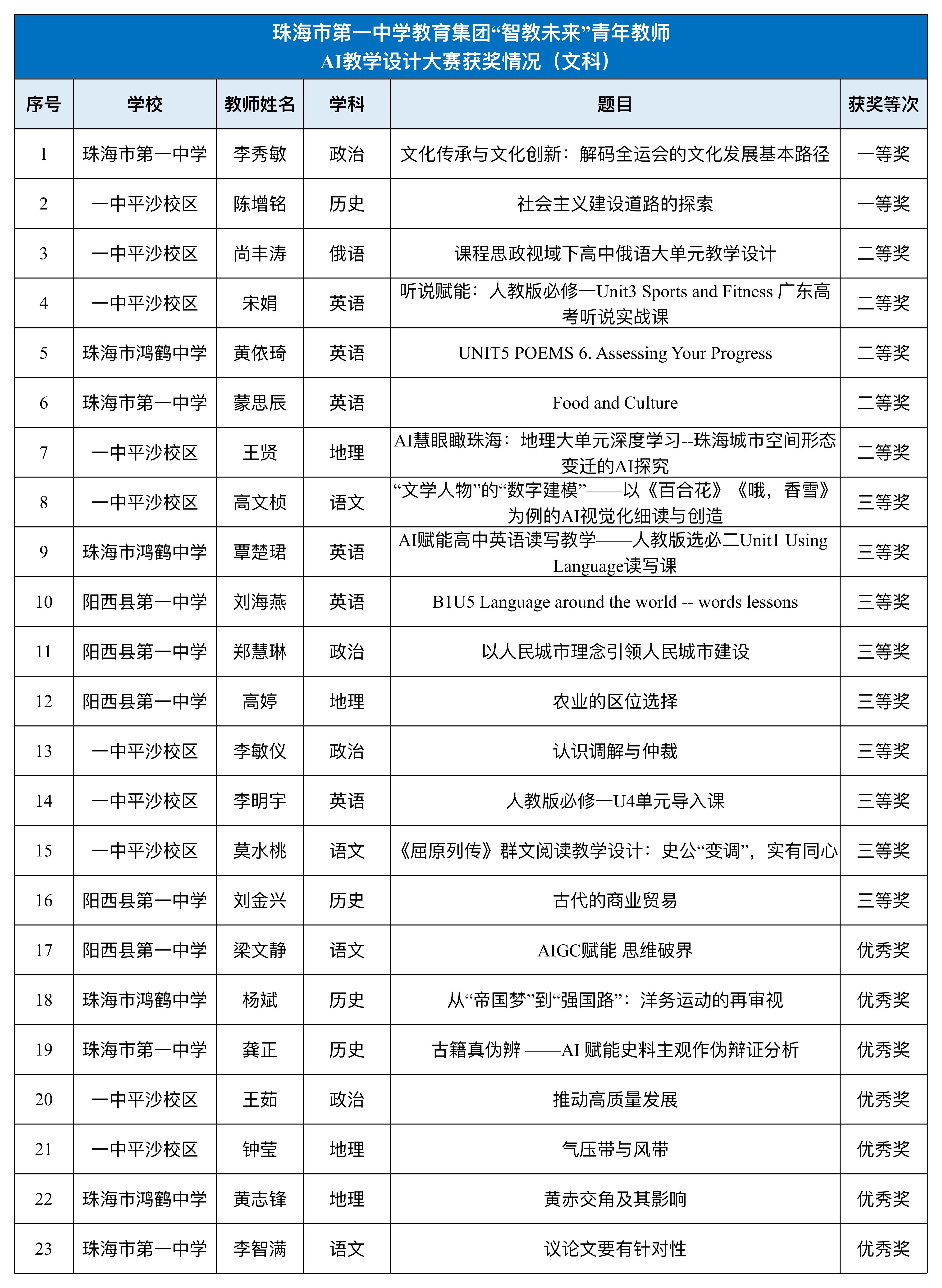 AI赋能启新篇,以赛促教共成长——珠海市第一中学教育集团青年教师AI教学设计大赛圆满落幕