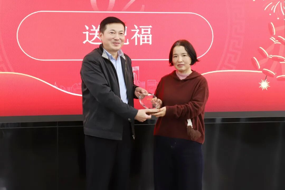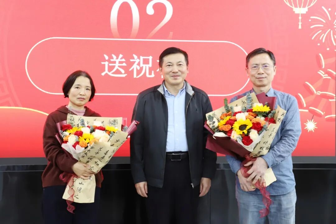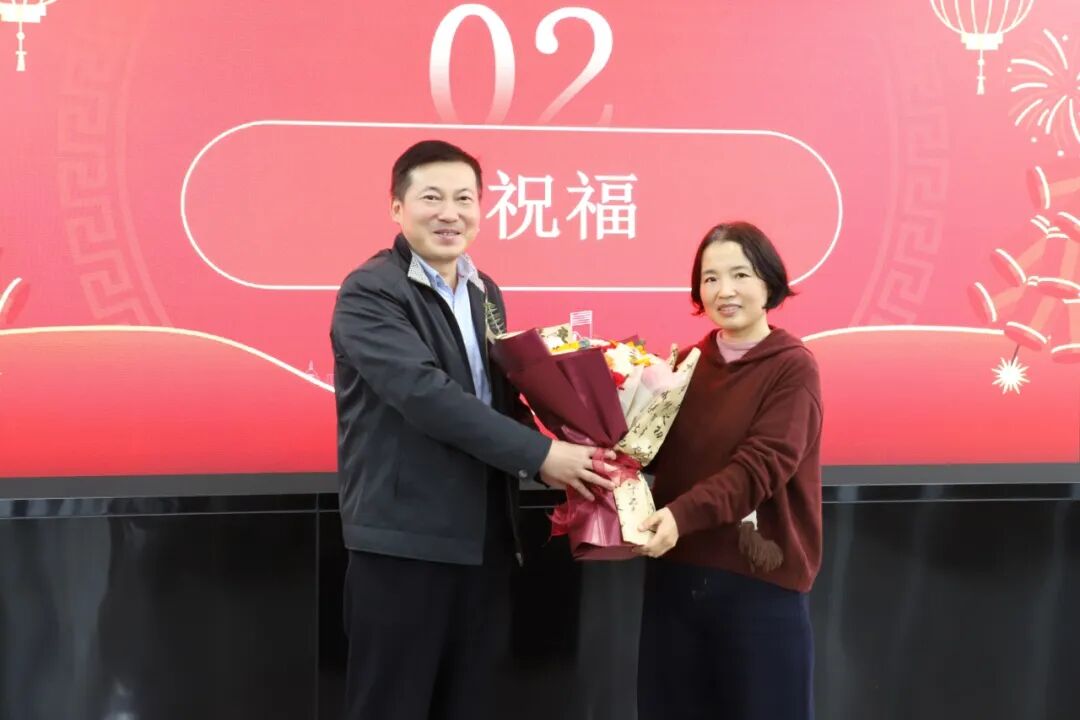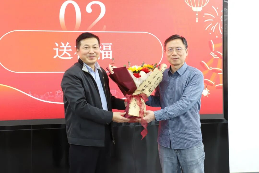张六安书记为退休教师赠送鲜花与纪念品,衷心祝愿他们生活幸福、顺遂安康、乐享惬意退休生活,并希望他们常念校园温情,继续关心和支持学校发展。