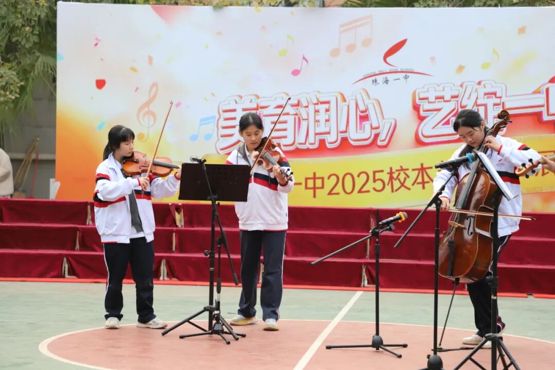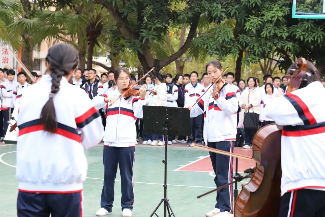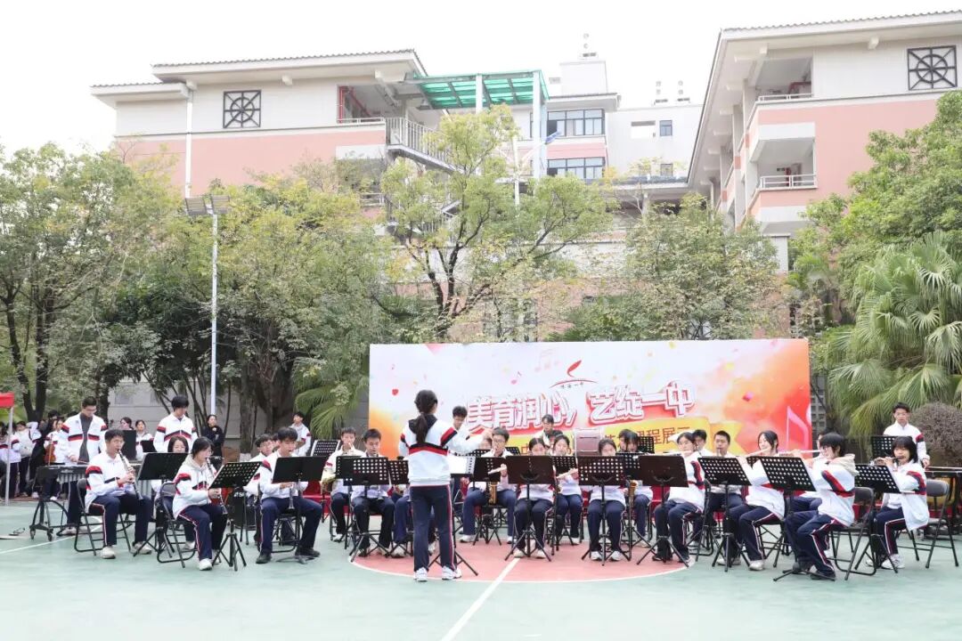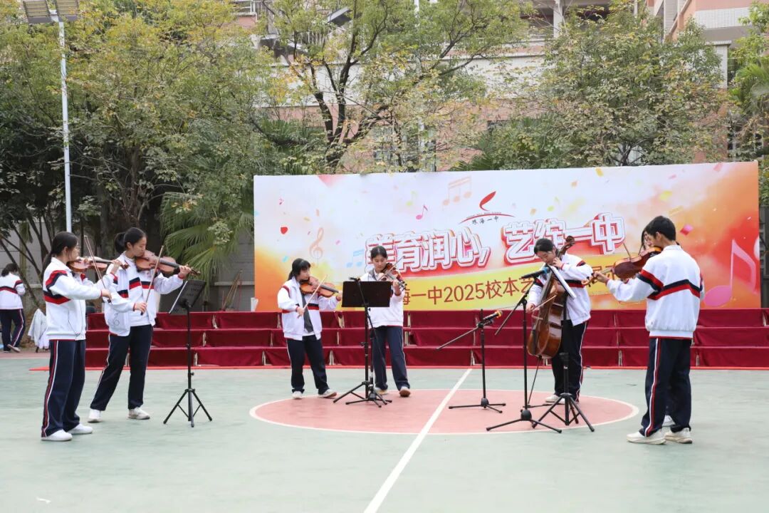 2026年1月23日,我校在篮球场举行主题为“美育润心 艺绽一中”的艺术校本课程展演,本次展演由星空合唱团、星空管乐团、星空弦乐团、星空舞蹈团、星空戏剧团及吉他弹唱校本课联袂呈现。