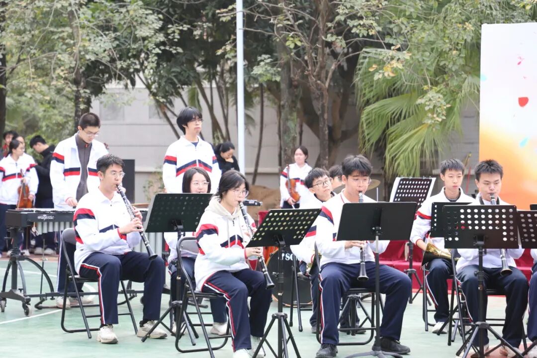 星空管乐团表演管乐合奏《你的名字》,圆号收纳彗星的尾迹,单簧管定格流星的轨迹。一段长号的滑音——台下的目光在旋律中悄然交汇,仿佛音符流淌之处,时光便在此刻驻足。原来校本课程不仅教会演奏,更把画面里的情感,译成可珍藏于心底的星芒。