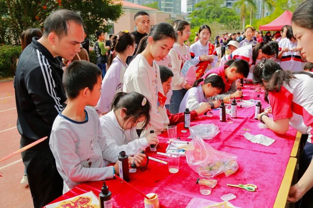 文创展台前,各学校展示的特色文创产品琳琅满目;书签图章制作区,参与者可以亲手制作独一无二的新春纪念品。这些项目将教育元素与新春氛围完美融合,体现了珠海教育“五育融合”的实践成果。