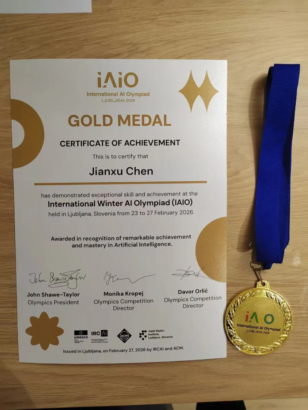 历史性突破!珠海一中陈剑栩同学代表中国队在国际冬季人工智能奥林匹克竞赛(IAIO)夺金!