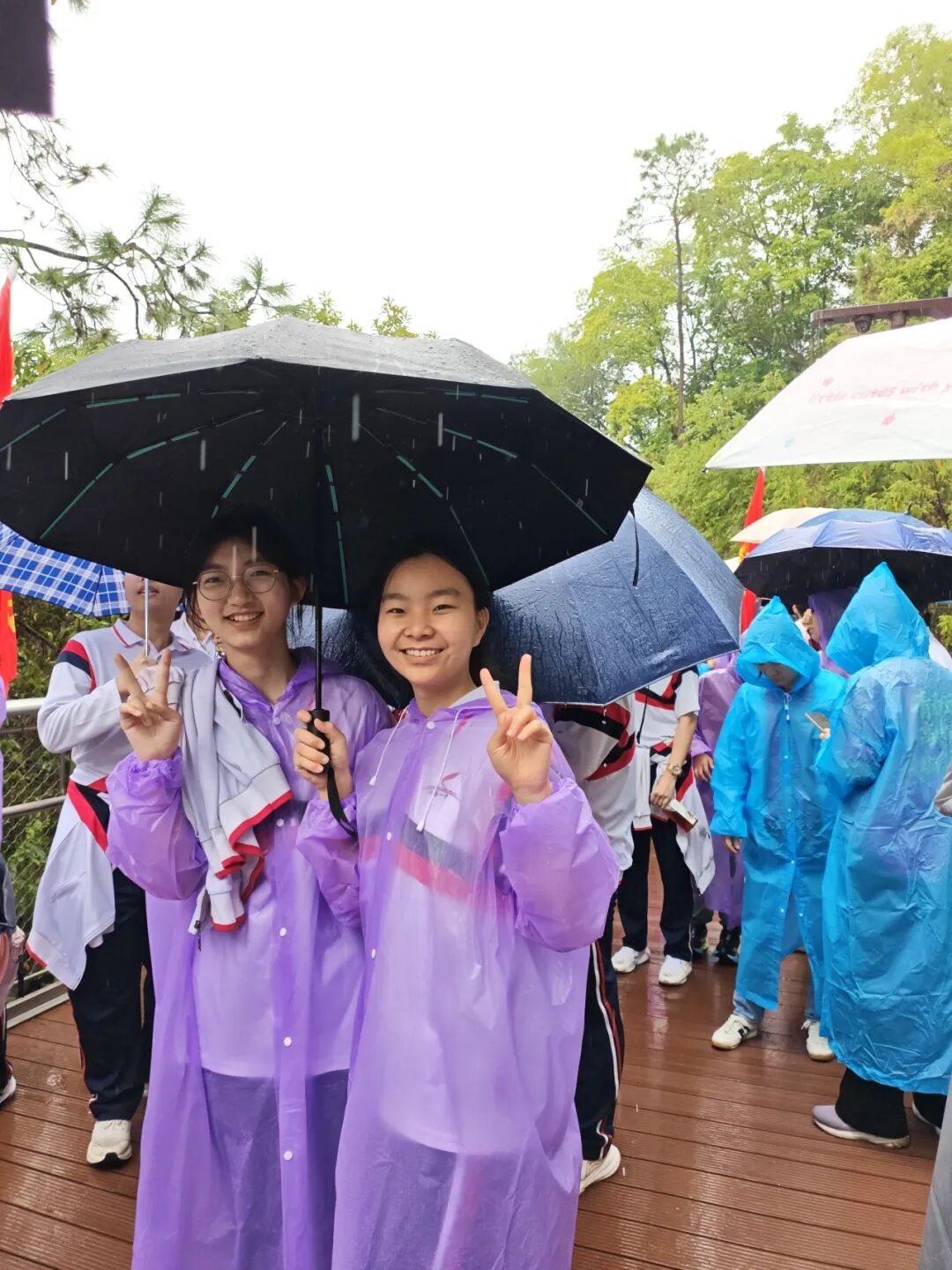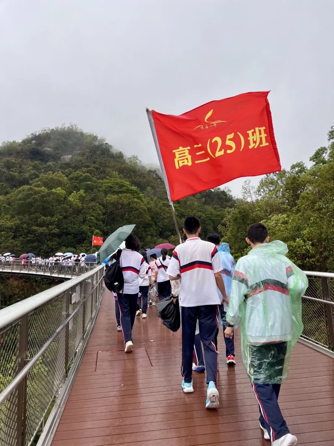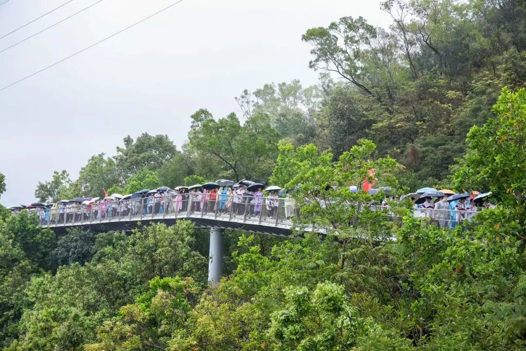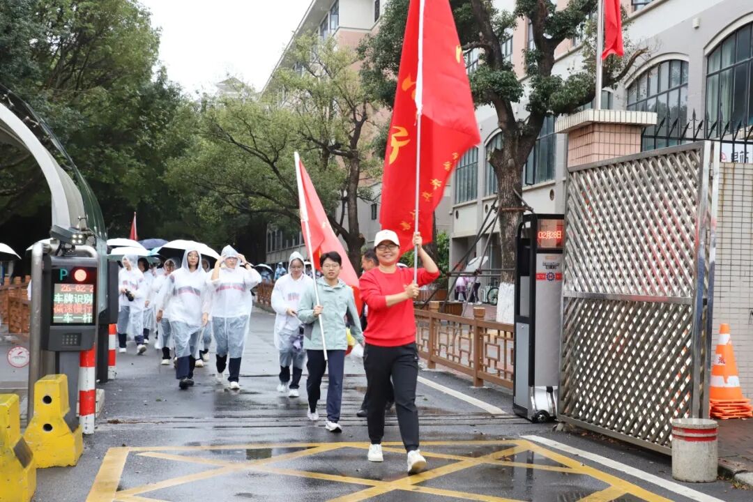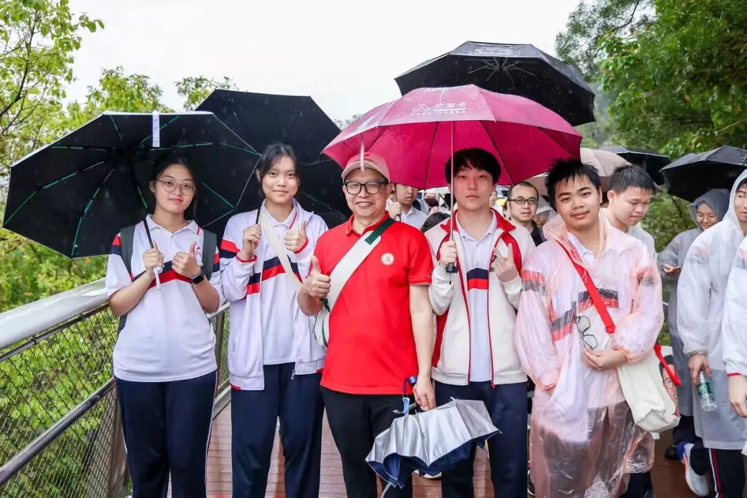 天公虽不作美,但如酥的春雨却为这场远足增添了几分诗意与考验。师生们精神抖擞,五彩斑斓的雨衣宛如山间绽放的花朵,为雨中的香山云道注入了无限生机。
