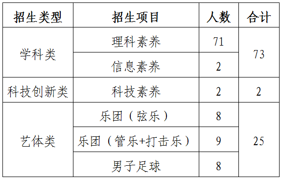 (2)科技创新类项目招生,考生中考成绩需达到我校全市统招线下20分(含)以内。